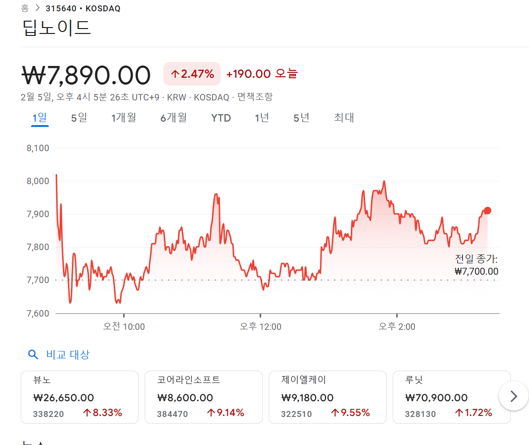6. 딥노이드(315640) – 의료 AI 딥시크 관련주
