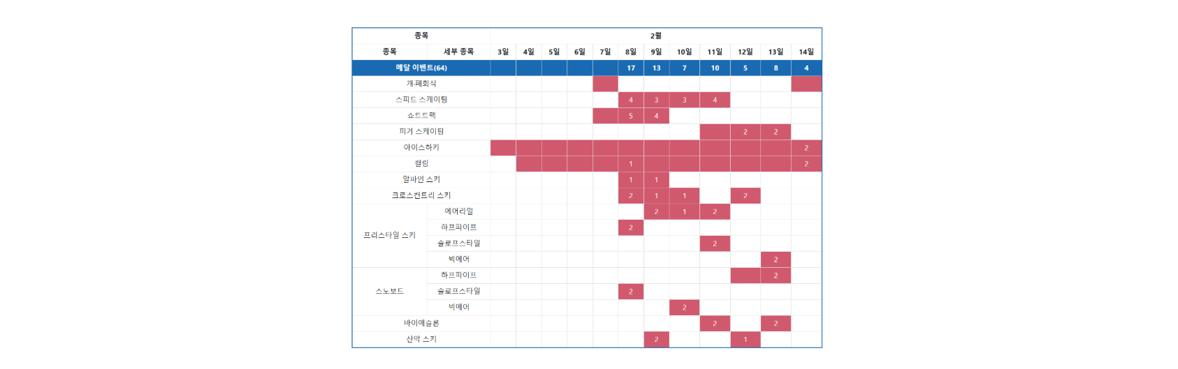 | 쇼트트랙 | 2월 8일 ~ 2월 11일 | 조회하기 > |